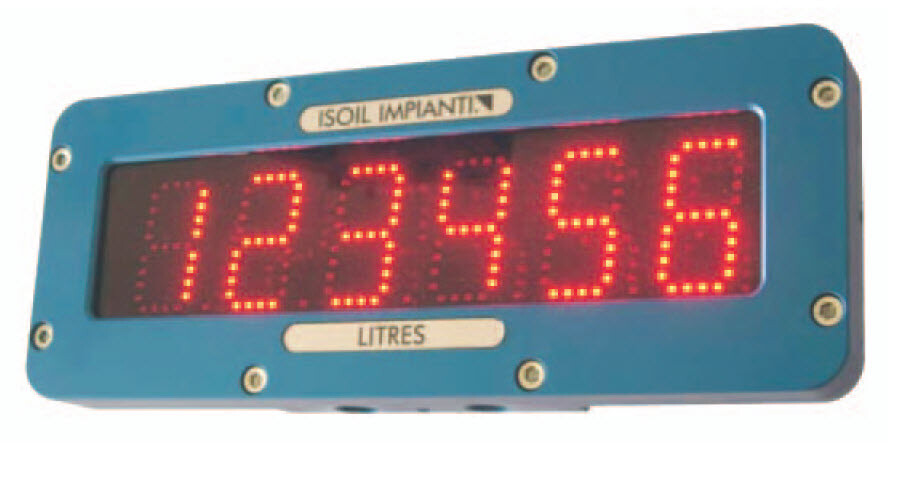 From a metrology standpoint, it is the main meter (and counter) that is the only official metering reference. Therefore, the LFD-6 has to be considered as a simple repeater of the main instrument. The value displayed is received by factorised pulses representing the minimum value to be read (e.g. if the display is required in litres, then 1 pulse=litre). If the LFD-6 is used in conjunction with ISOIL’s VegaII or VegaT electronic counter it can be linked via serial line. The LFD-6 has a maximum of 6 digits plus a decimal point that can be programmed in a fixed position. At the end of the delivery the unit can be reset to zero remotely by means of a dedicated input.
