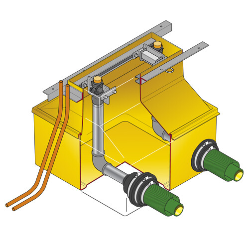 780mm x 780mm GRP solid base sump and corbel to fit Wayne Vista dispenser models with 48″wide body models. Designed to fit between double canopy columns. Includes 2 dispenser support rails, 4 J bolts, 2 shear valve rails and 4 U bolts.