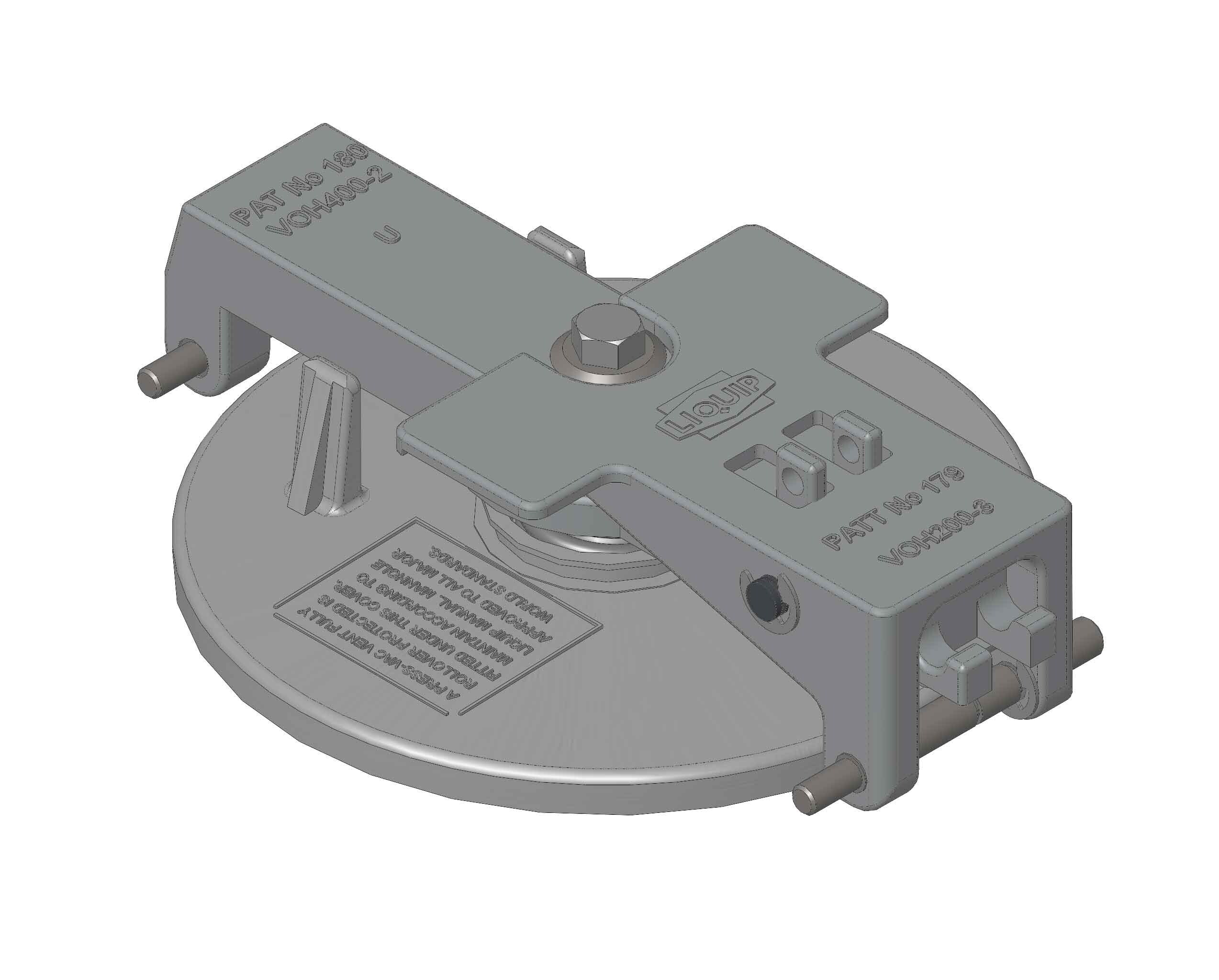 Mounts onto all Liquip VOH series manholes with hinge pins provided.